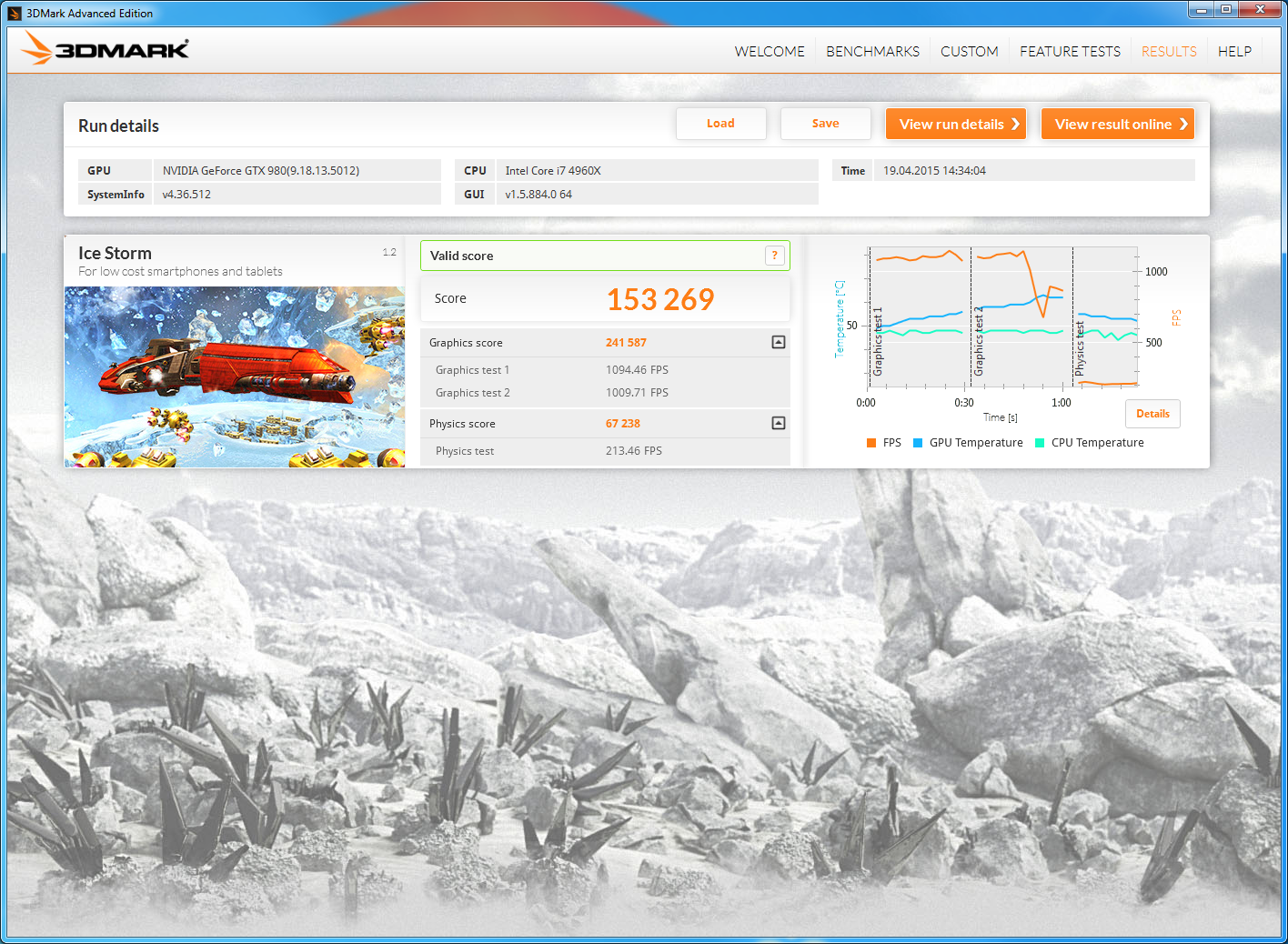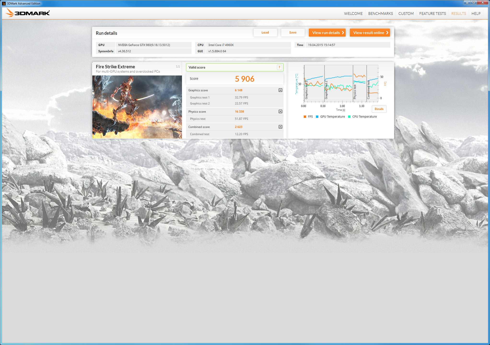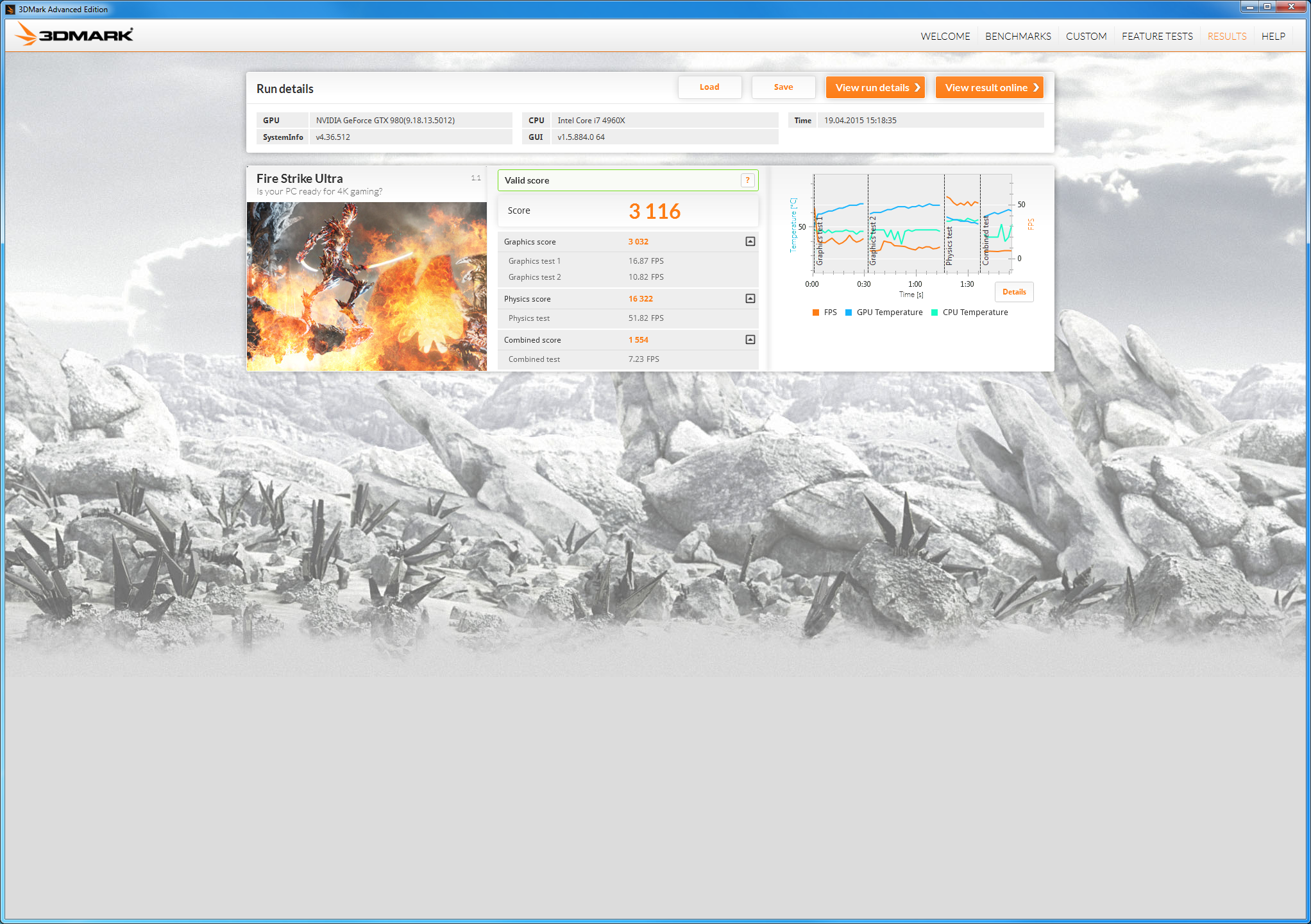 Тесты Fire Strike Extreme и Ultra отличаются только разрешением экрана, поэтому был сделан только один тест с этими настройками