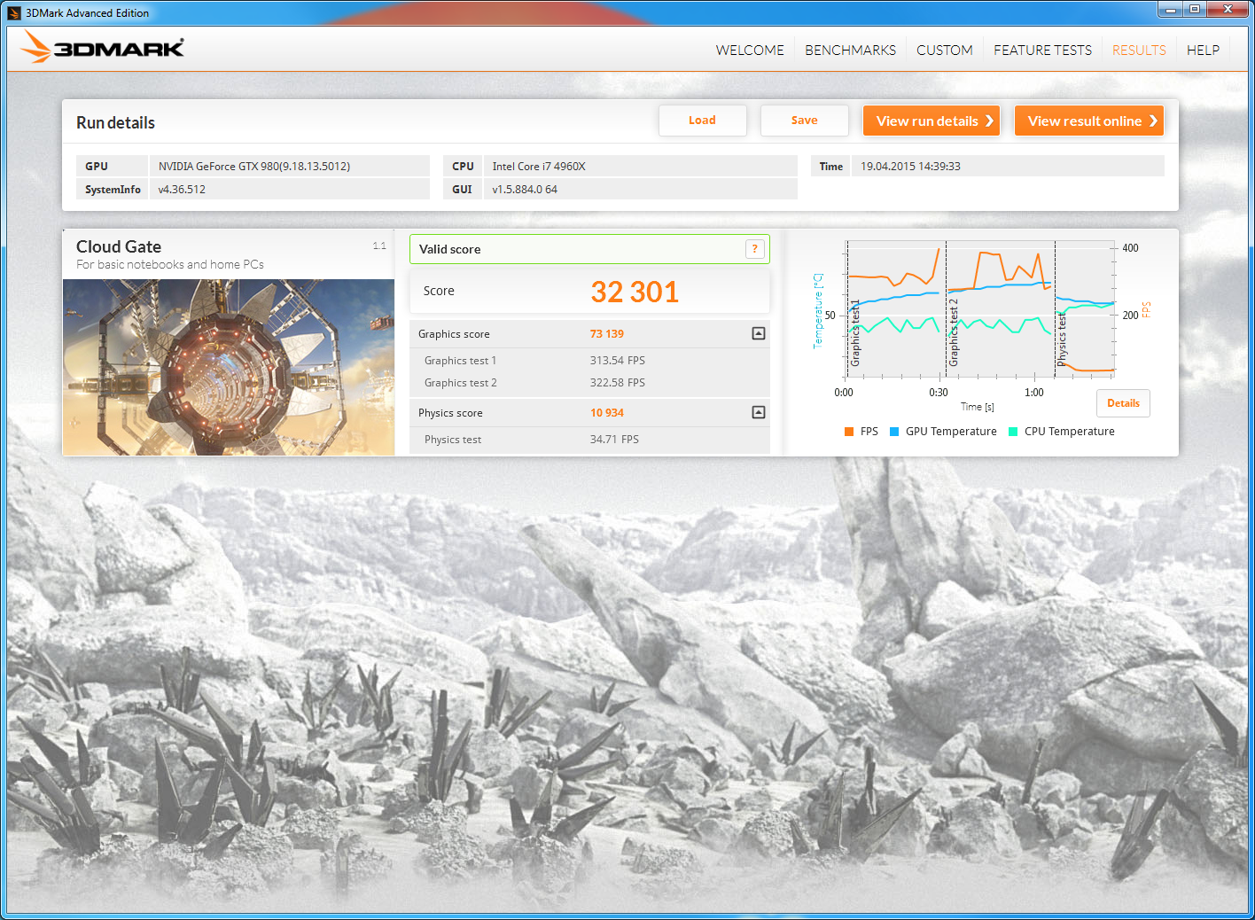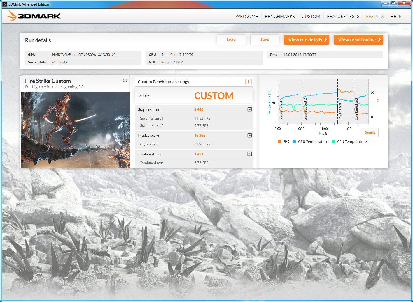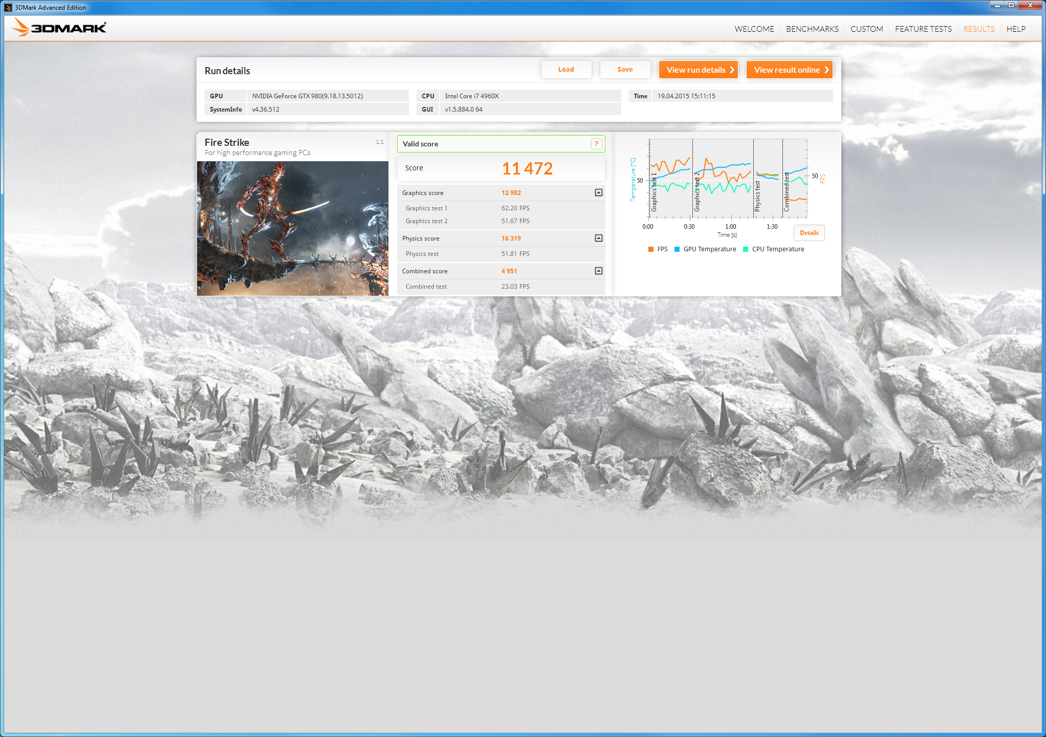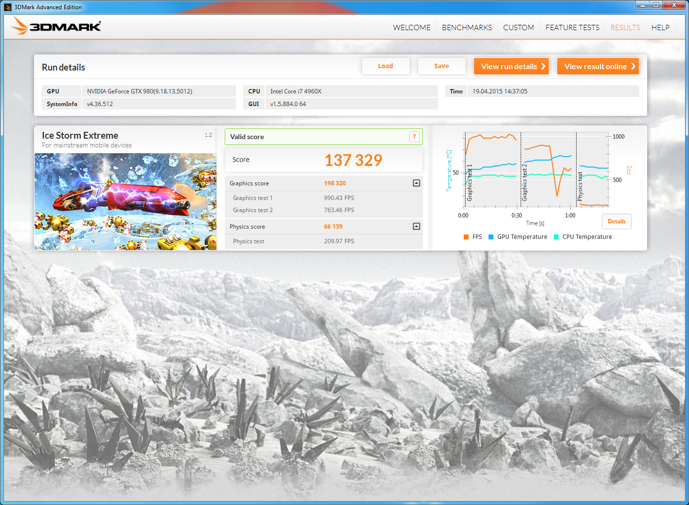 Тесты Fire Strike Extreme и Ultra отличаются только разрешением экрана, поэтому был сделан только один тест с этими настройками