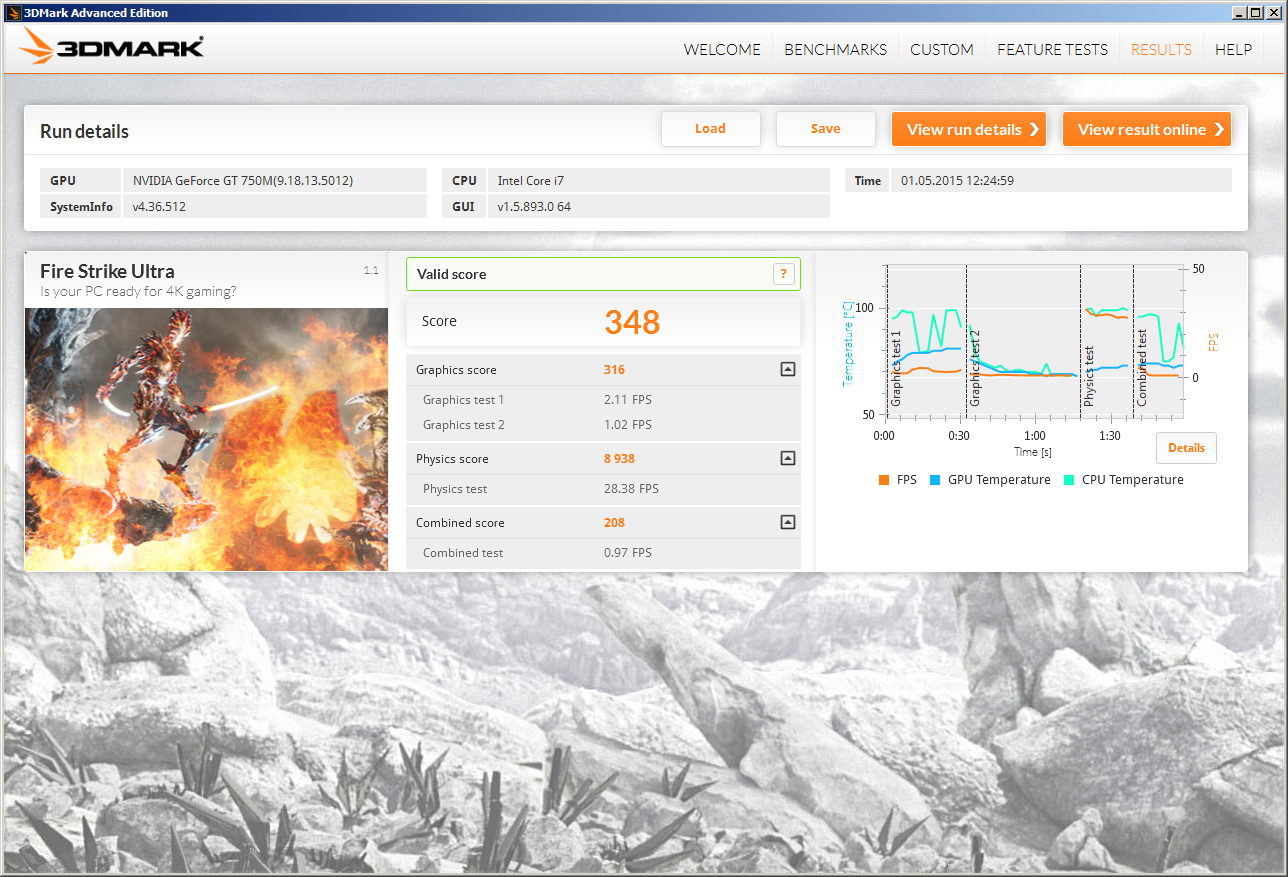 Fire Strike Ultra (3840x2160): 316|208
