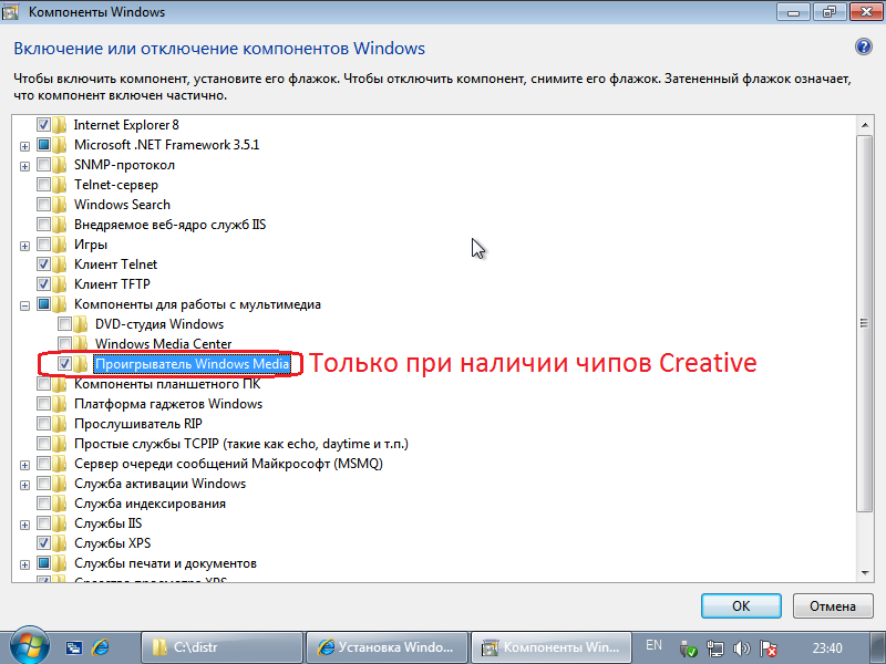 Панель управления - Программы и компоненты - Включение и отключение компонентов Windows. Настроить точно так же: