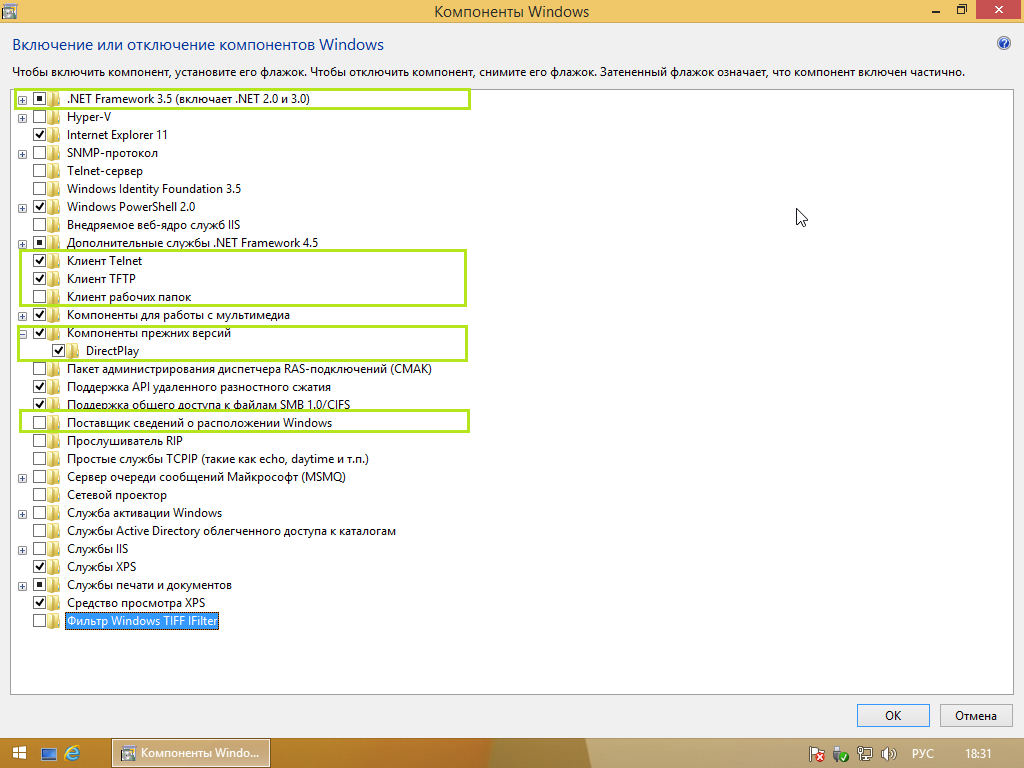 Панель управления - Программы и компоненты - Включение и отключение компонентов Windows. Настроить точно так же: