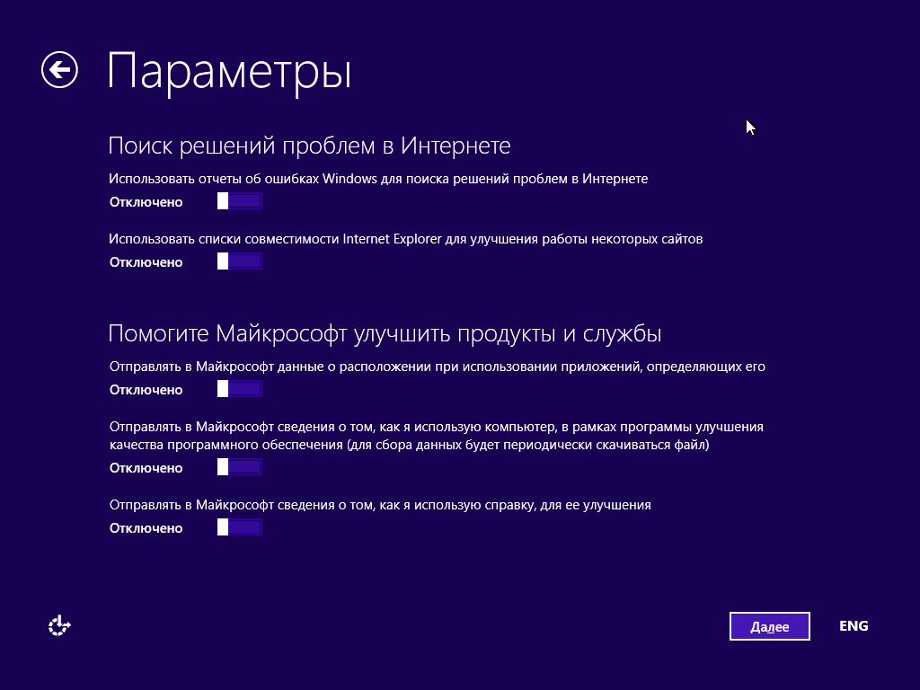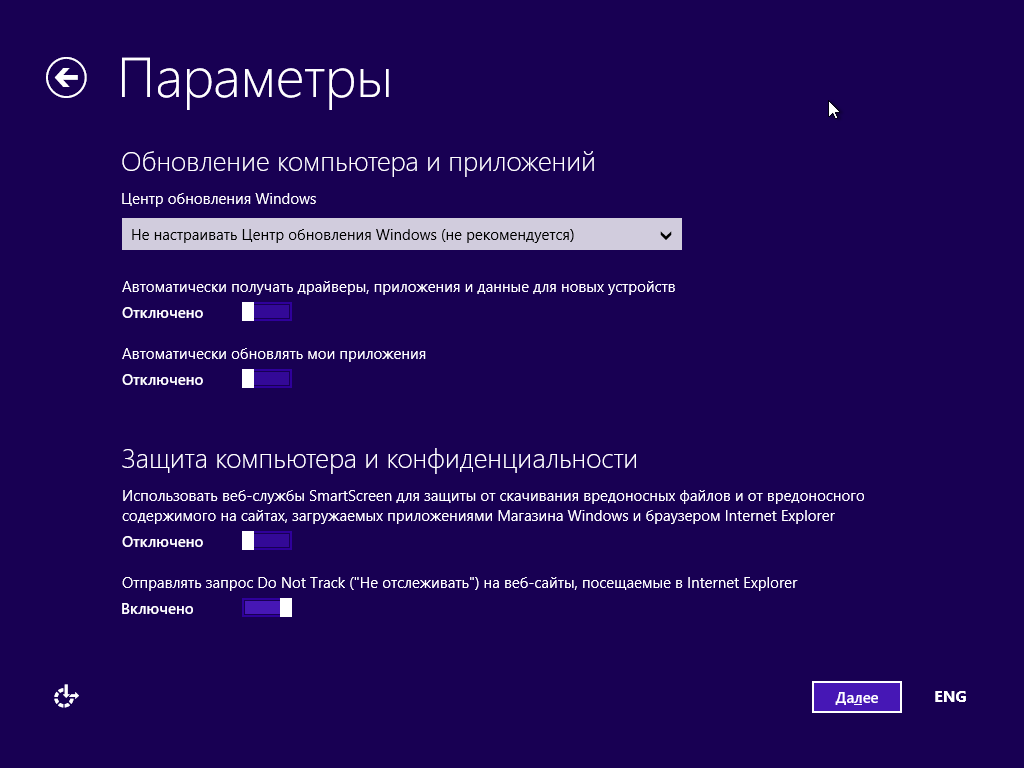 Зайти в интерфейс Metro (кнопка Пуск), убрать с экрана все плитки кроме "рабочего стола" (правый клик по плитке - убрать с начального экрана) (иначе система без спроса будет лезть на вредоносный msn.com узнавать новости, погоду и финансовые рынки).
